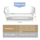 Una repisa versátil y resistente, diseñada para adaptarse a diversas marcas de refrigeradores. Ideal para almacenar botellas, frascos y otros productos en la puerta del refrigerador. Fácil de instalar y fabricado con materiales duraderos para garantizar una larga vida útil. Optimiza el espacio y mantiene tus productos organizados para la parte superior de la puerta del refrigerador vertical, no funciona para la ubicación inferior.