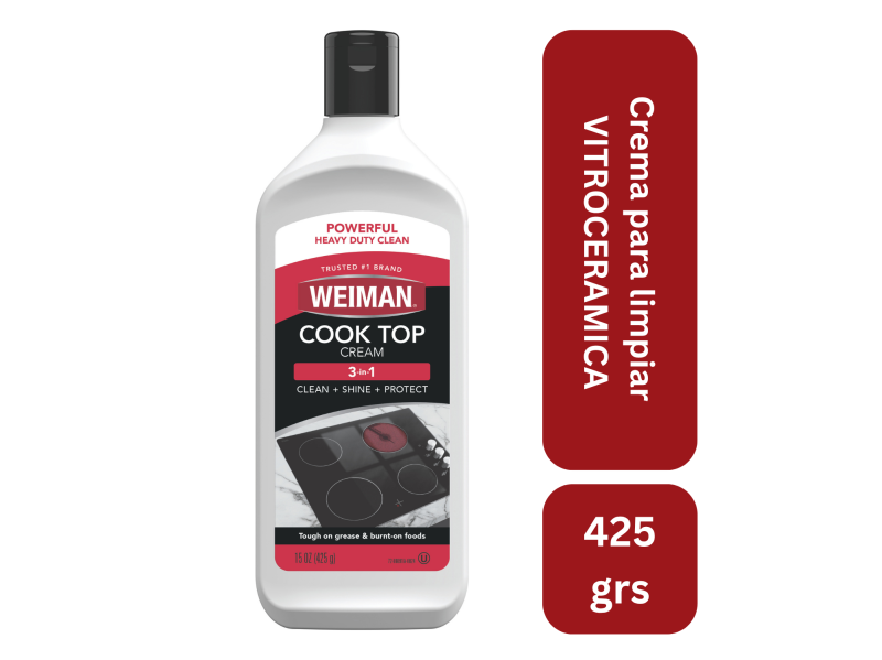 Específicamente formulada para quitar gentil y eficazmente las quemaduras dejando brillo y protección en las superficies de vitrocerámica.