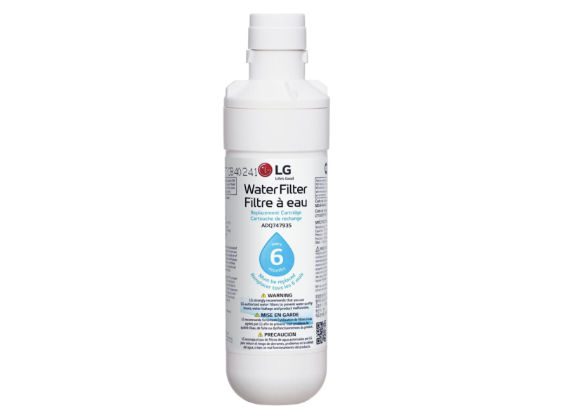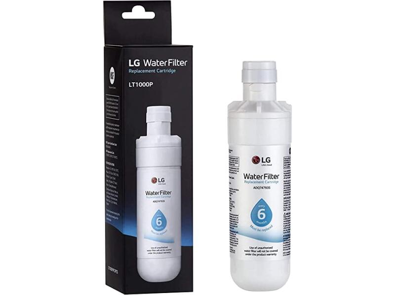 Filtro interno de agua compatible con refrigeradores LG, elimina impurezas y mejora la calidad del agua y hielo, instalación rápida y sin herramientas. Color celeste