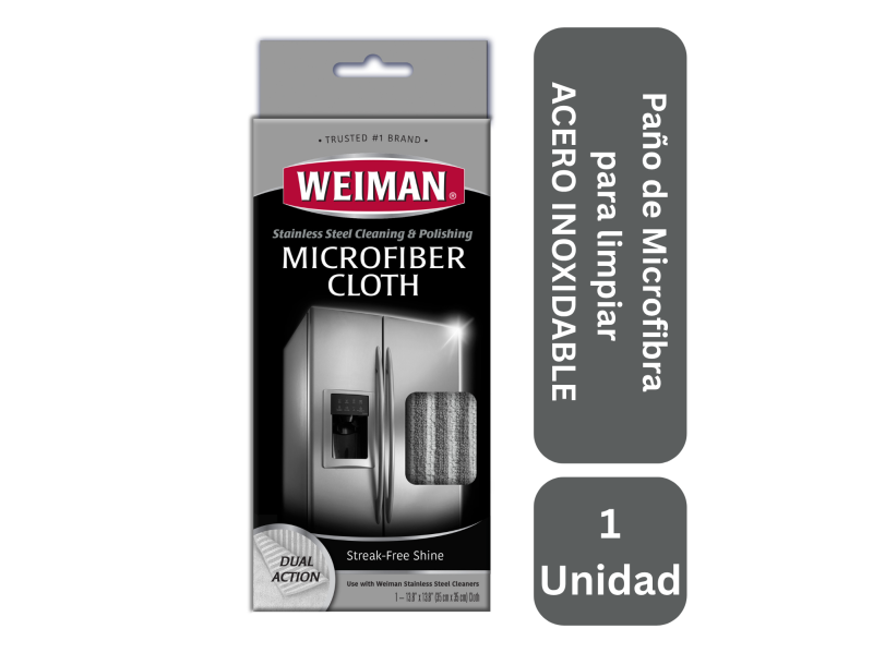 Todos los limpiadores y abrillantadores de acero inoxidable de Weiman funcionan aún mejor cuando se usa el paño de microfibra Weiman para acero inoxidable. Un lado está diseñado para limpiar, el otro para pulir. Los resultados son simplemente impecables.