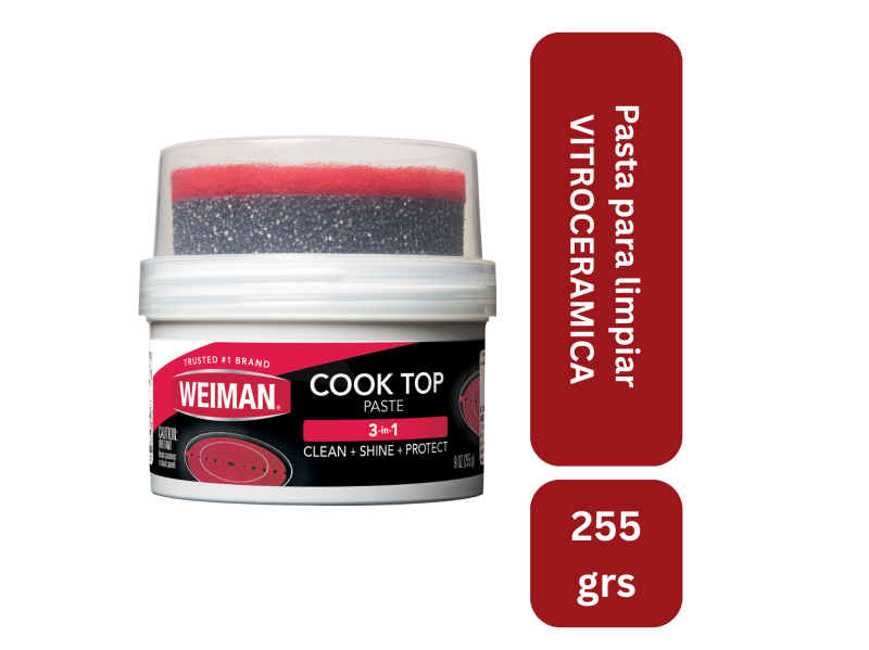 Weiman Cook Top MAX está especialmente formulado con la tecnología avanzada de micro-esferas para eliminar fácilmente los alimentos quemados, la grasa y las marcas de agua, dejando reluciente el cristal. Micro-Esferas proporcionan potencia de lavado extra para cortar a través de las más duras capas alimentos quemados. Está garantizada para no rayar. Cook Top MAX también contiene protectores de vidrio para mantener la eficacia de la cocción, en la la superficie superior del vidrio.